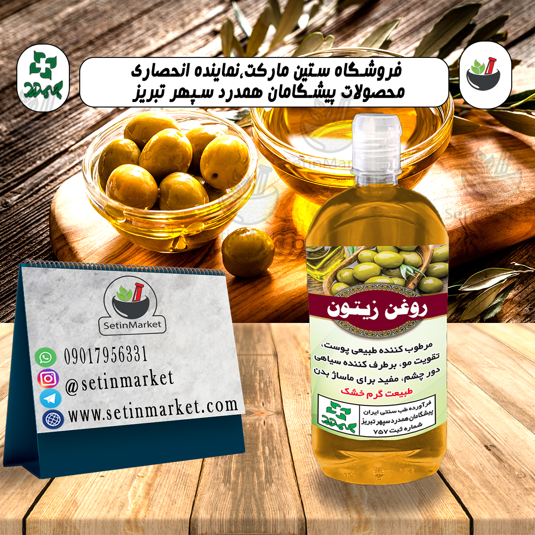 روغن زیتون مرغوب خواص های درمانی بسیار فراوانی دارد از جمله این خواص از آنجایی که روغن زیتون سرشار از ویتامین E و ویتامین A می باشد عملکرد بسیار مطلوبی بر روی پوست دارد و می توان از آن به عنوان یک ضد آفتاب طبیعی استفاده کرد. می توان از آفتاب سوختگی جلوگیری کرد. این روغن فوق العاده موثر کارایی دیگری همچون تقویت مو برطرف کردن سیاهی دور چشم و… دارد. روغن زیتون شرکت پیشگام همدرد سپهر تبریز از بهترین و مرغوب ترین زیتون های کشور گرفته شده است و به صورت ۱۰۰ درصد طبیعی به دست شما کاربران گرامی می رشد.